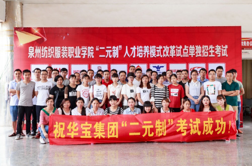 2017年6月14日,華寶集團與泉州紡織服裝職業(yè)學院合作的“二元制”人才培養(yǎng)模式改革試點單獨招生考試順利開考。